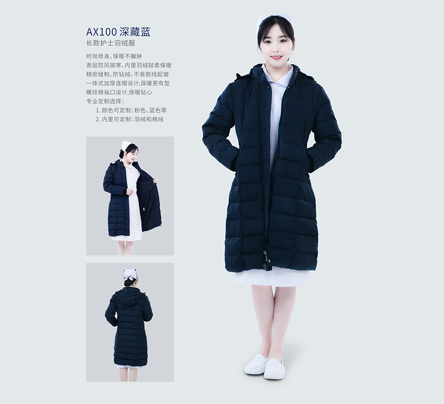 醫(yī)護(hù)羽絨/棉服以其出色的御寒功能而聞名,是在寒冷環(huán)境下的最佳選擇,能夠有效地抵御嚴(yán)寒,確保醫(yī)護(hù)人員在戶外工作時(shí)保持溫暖。